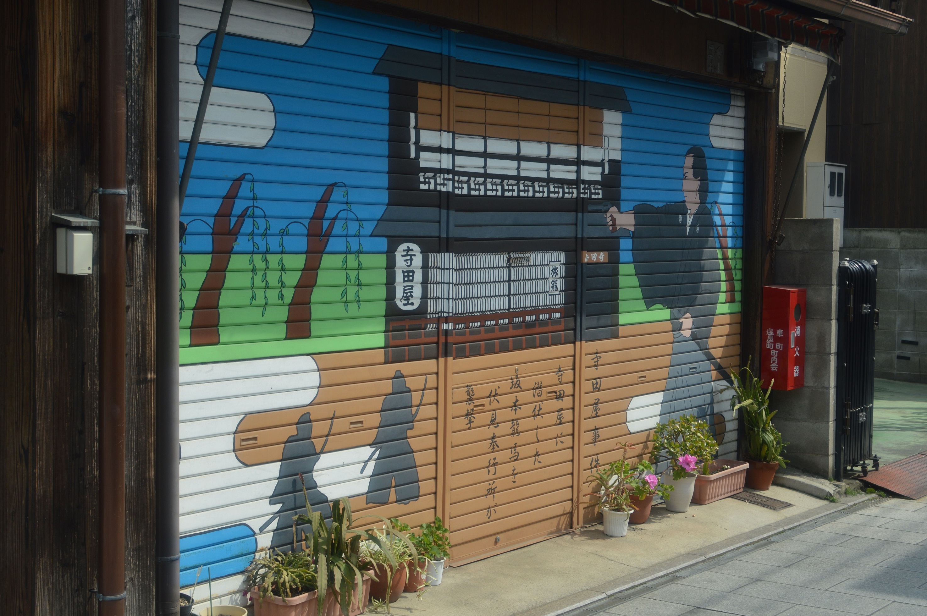 商店街のシャッターにも龍馬が描かれていました。