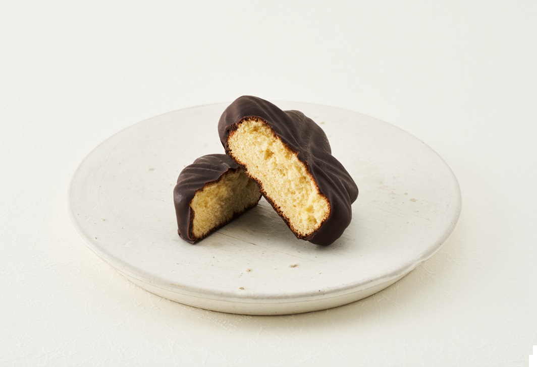 カステラ生地をチョコレートでコーティングしたお菓子です。 冬季限定商品です。ぜひご賞味ください! バラ売りのみ、1個115円(税込み)