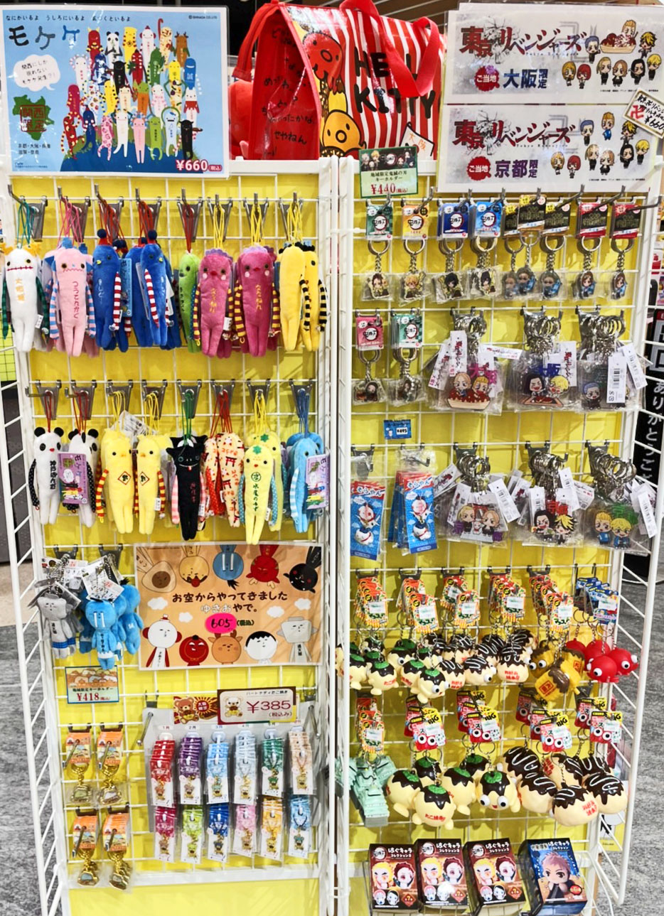 ↑「モケケ」、「東京リベンジャーズ」など人気キャラクターのご当地限定品もたくさん。