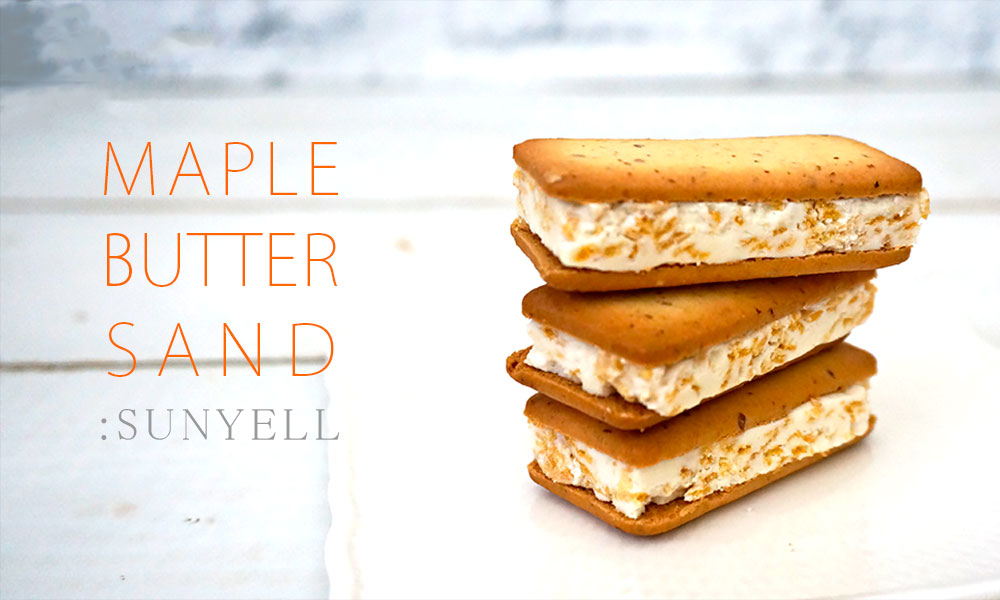 メープルシュガーを使用したサクサクのクッキーでホイップチョコを挟んだ