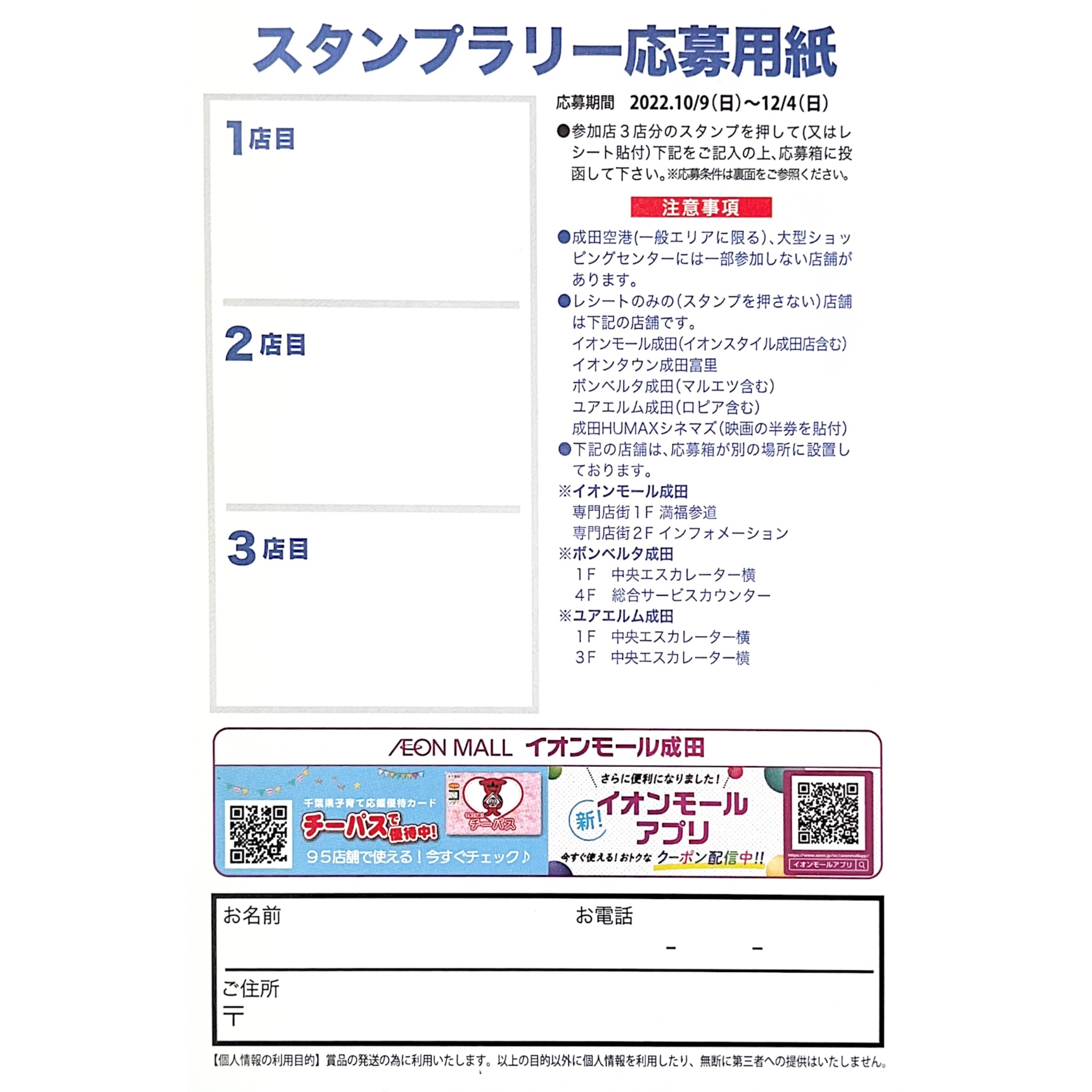 応募用紙を参加店に備え付けの応募箱に期間内に投函してください。