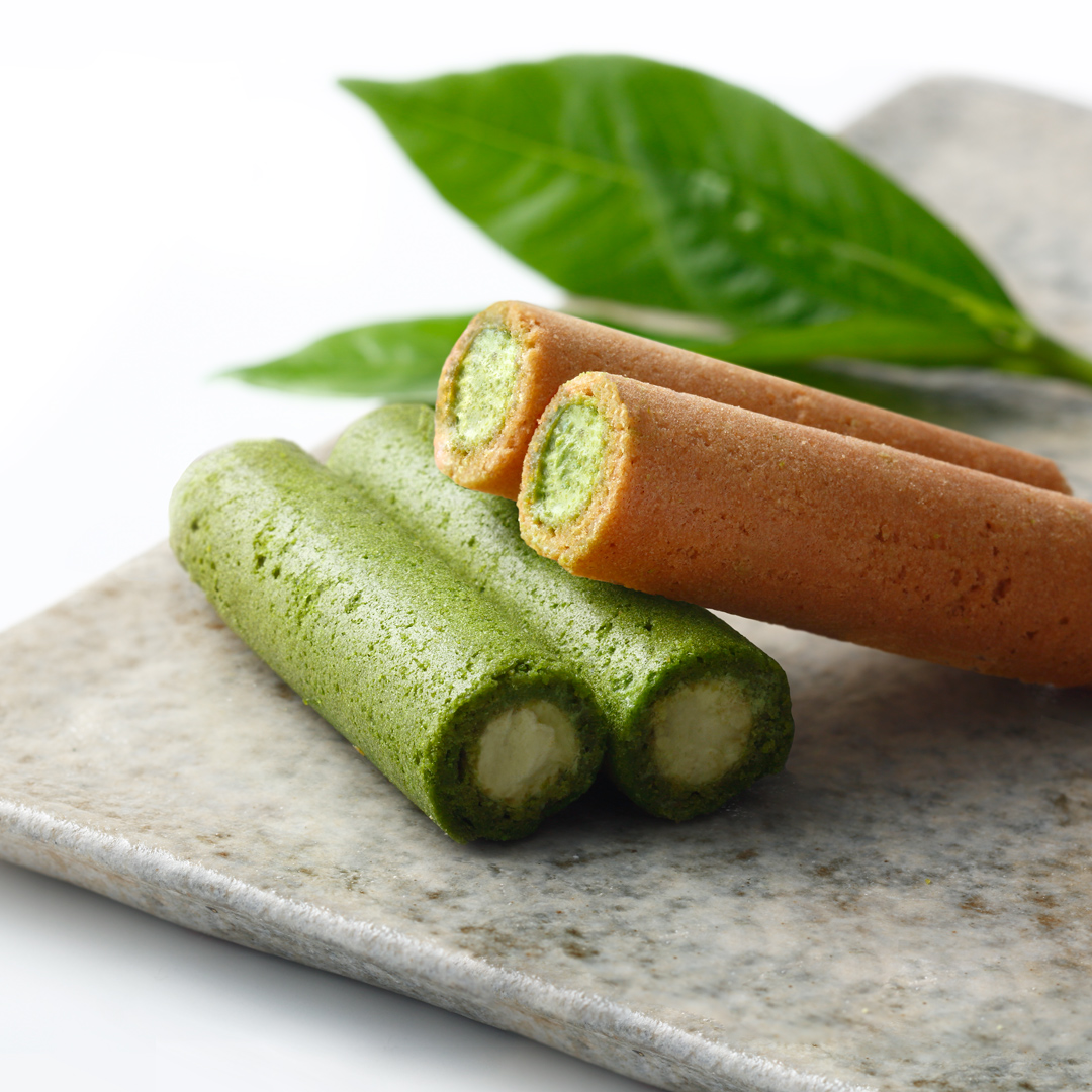 ◆「つじりの里」は、濃厚な石臼挽き抹茶クリームを丁寧に焼き上げた薄焼きロールせんべいで包んだ、祇園辻利人気No.1の抹茶菓子。
