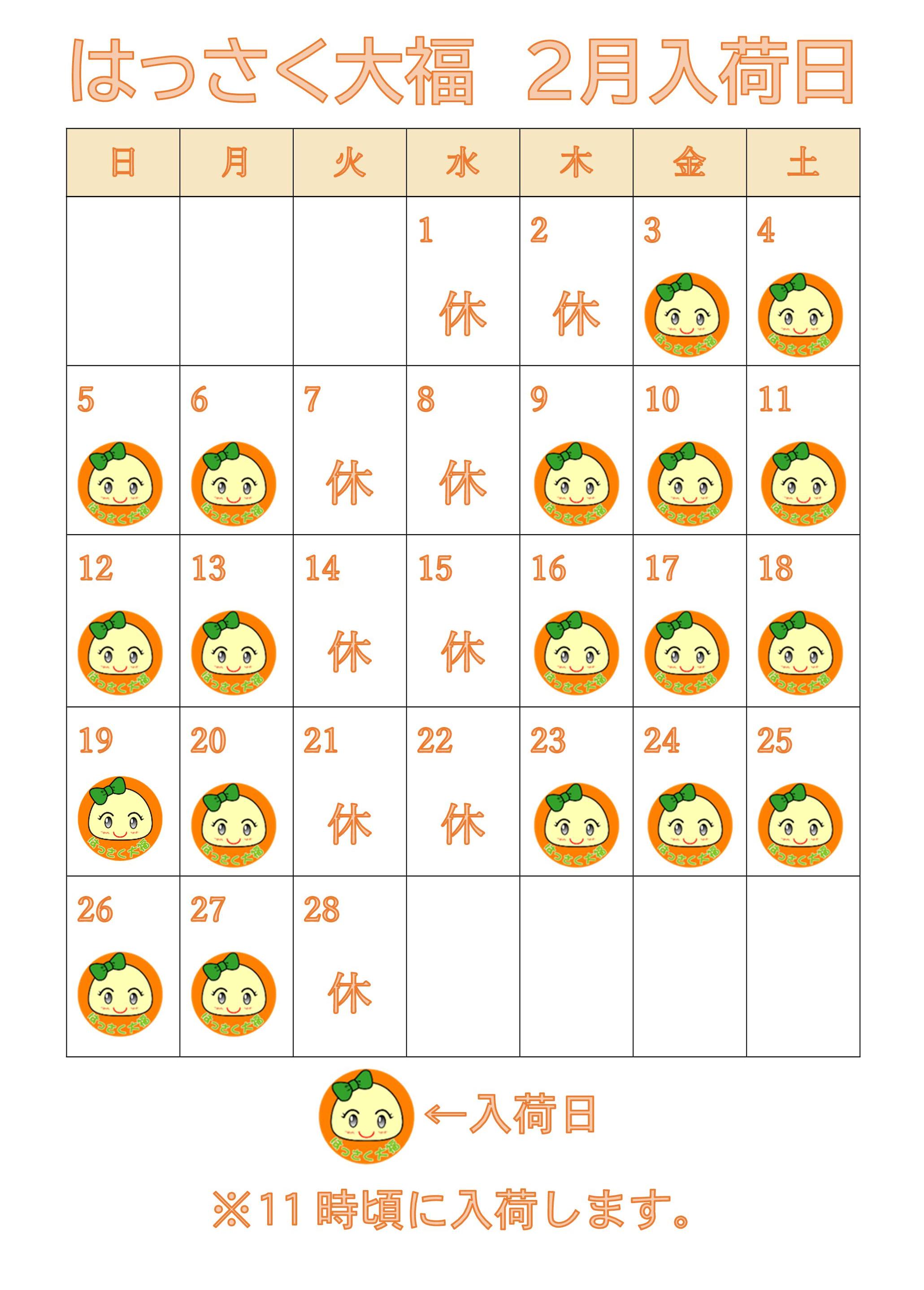 2023年2月の入荷予定は以下のカレンダーの通りです。