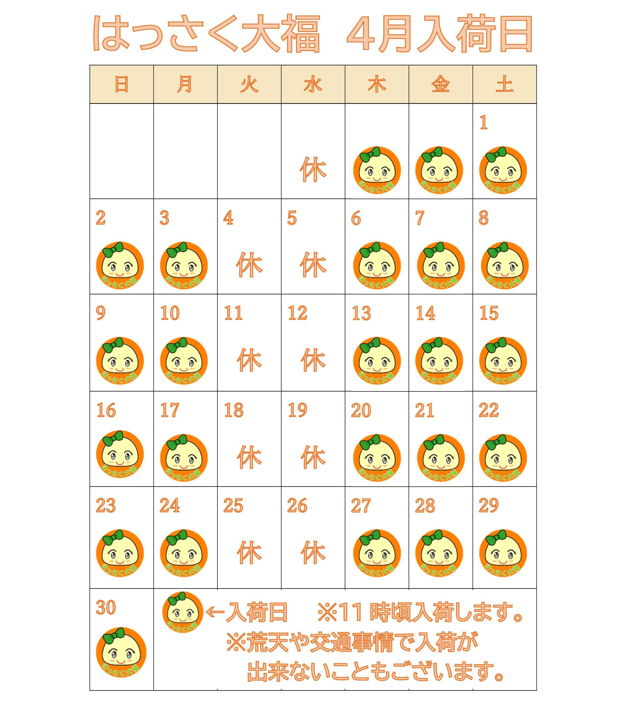 2023年4月の入荷予定は以下のカレンダーの通りです。