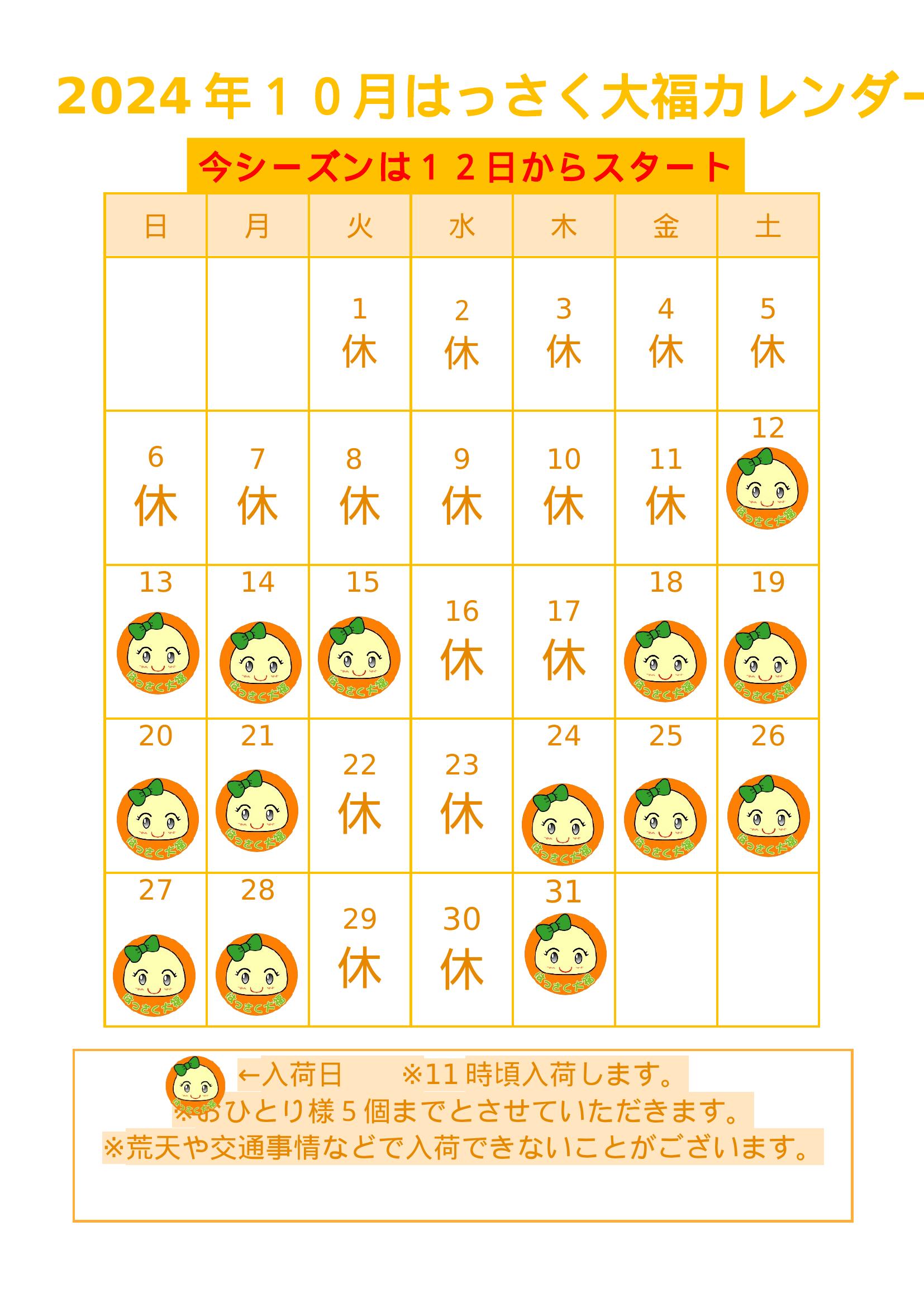 『はっさく大福』2024年10月の入荷日のお知らせです🍊