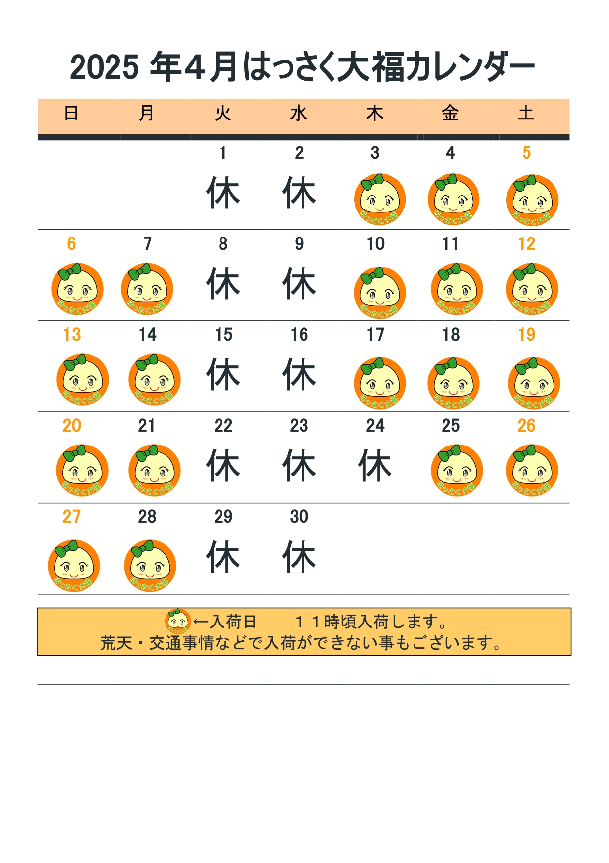 「因島はっさく屋」の「はっさく大福」2025年4月の入荷日のお知らせです🍊
