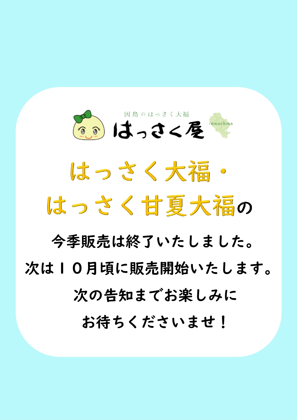 広島空港*はっさく大福・はっさく甘夏大福今季販売終了のお知らせ